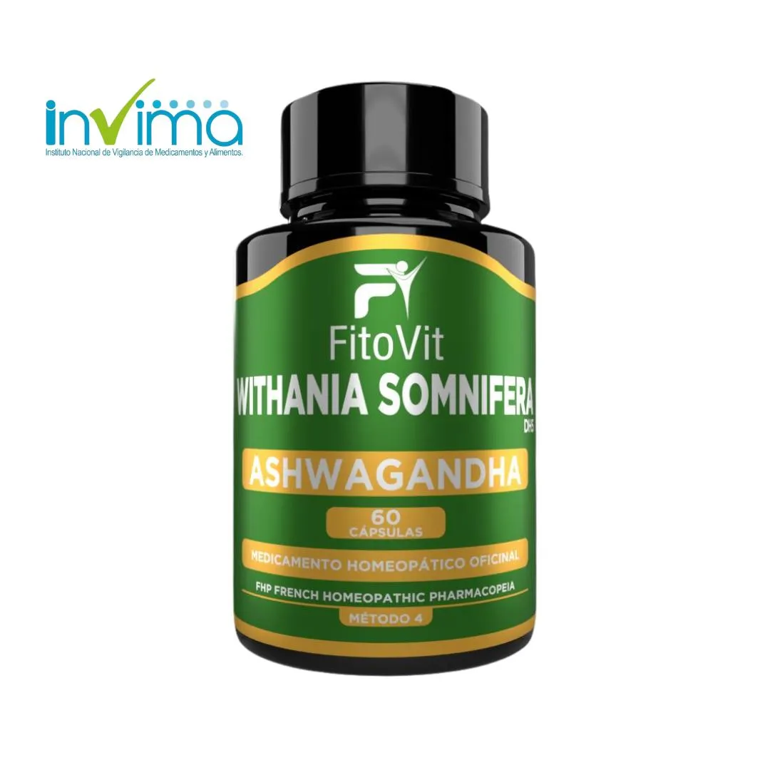 Suplemento natural con Withania Somnifera (Ashwagandha), reconocido por sus propiedades adaptógenas que ayudan al cuerpo a manejar el estrés, mejorar el descanso y aumentar la vitalidad.
